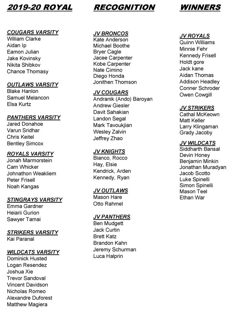 The LA Kings High School Hockey League would like to congratulate the following players on earning a 3.8 GPA or higher on their Fall Semester report card: